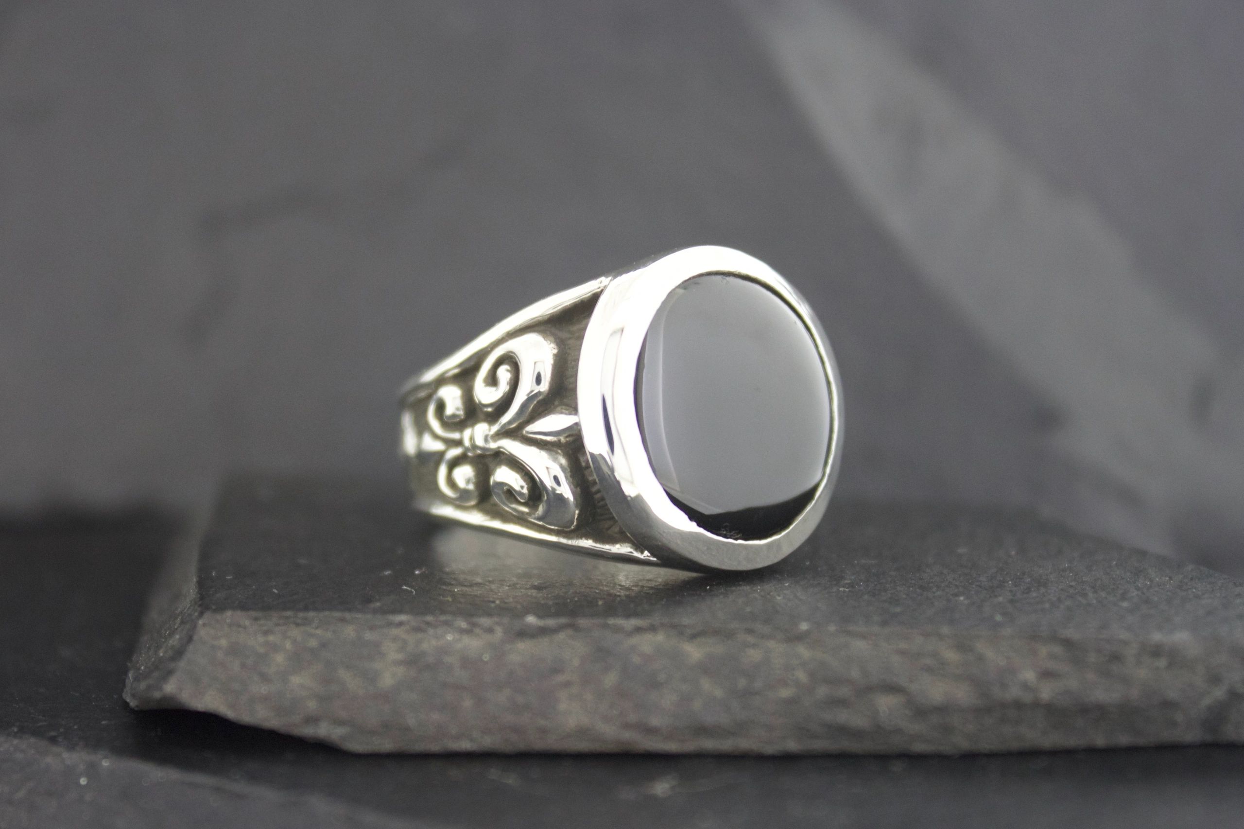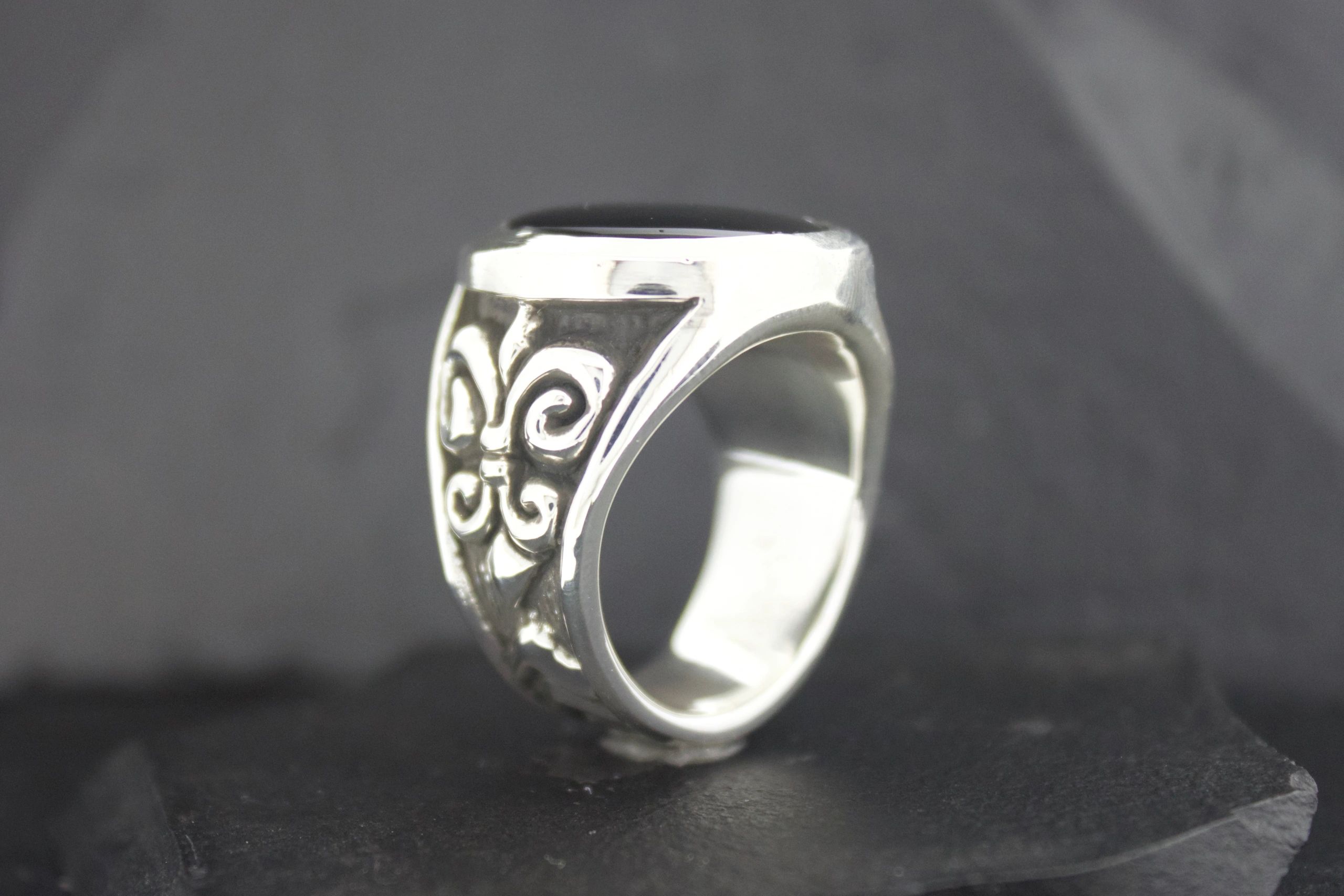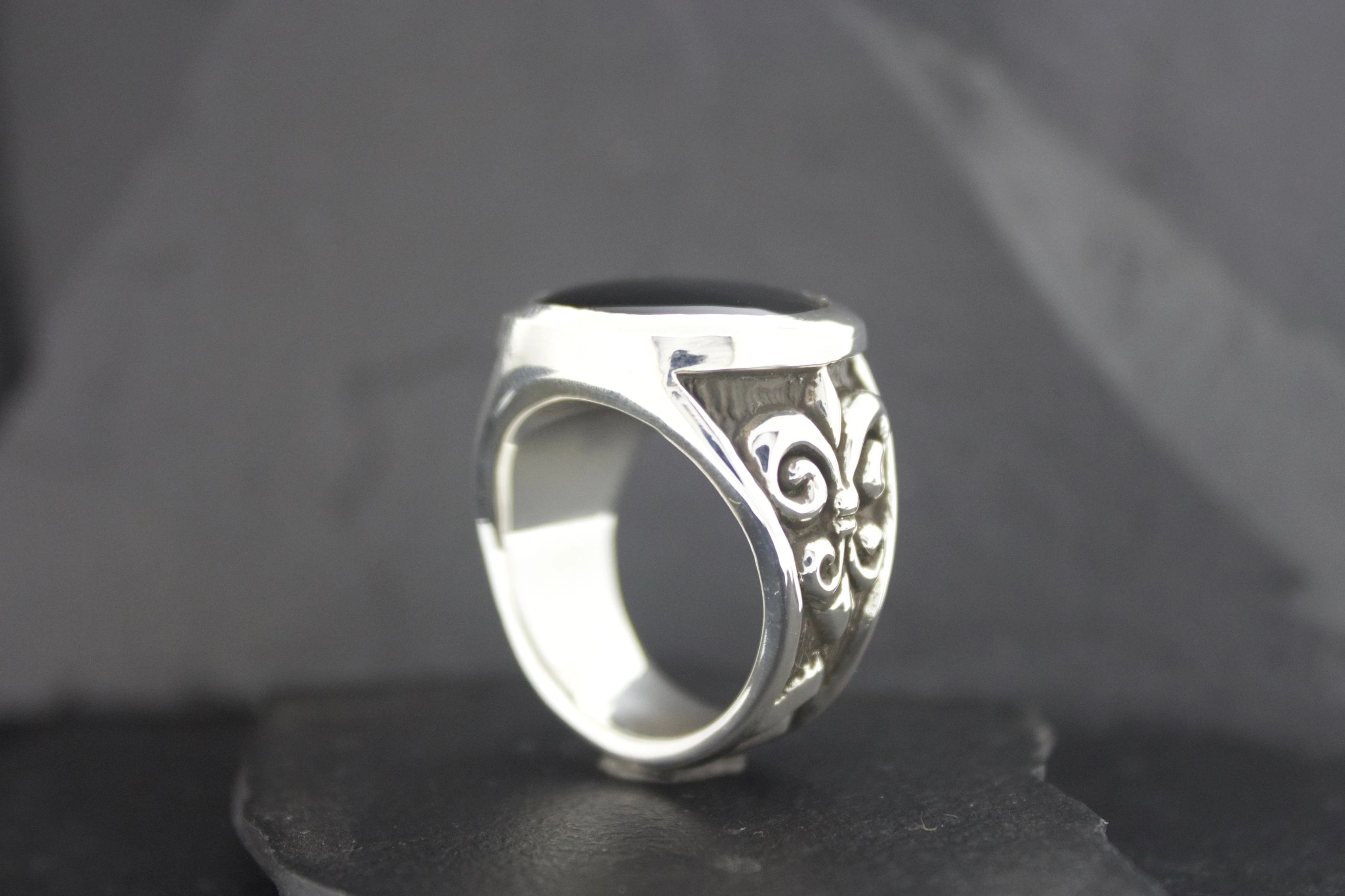 BLACK ONYX FLEUR DI LIS RING ROUND MEDIUM