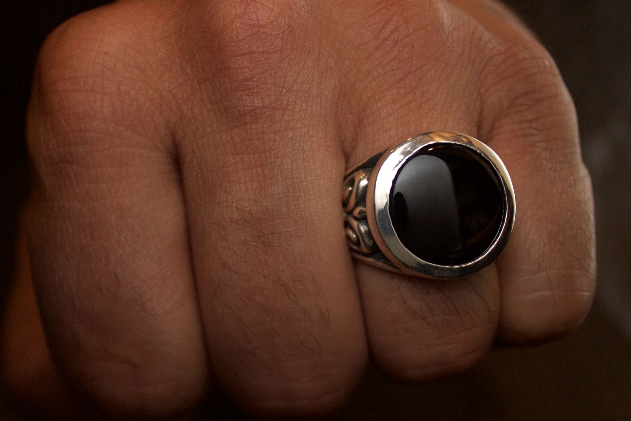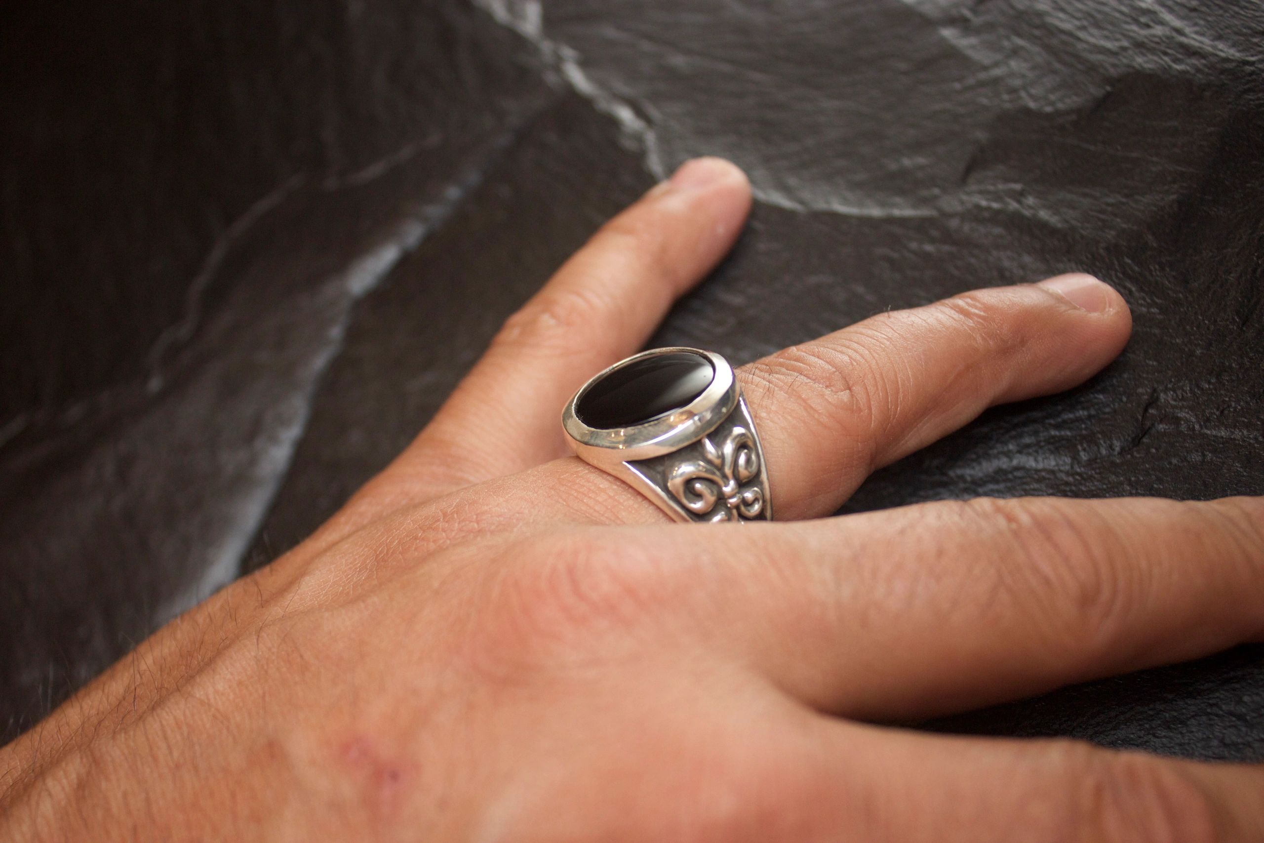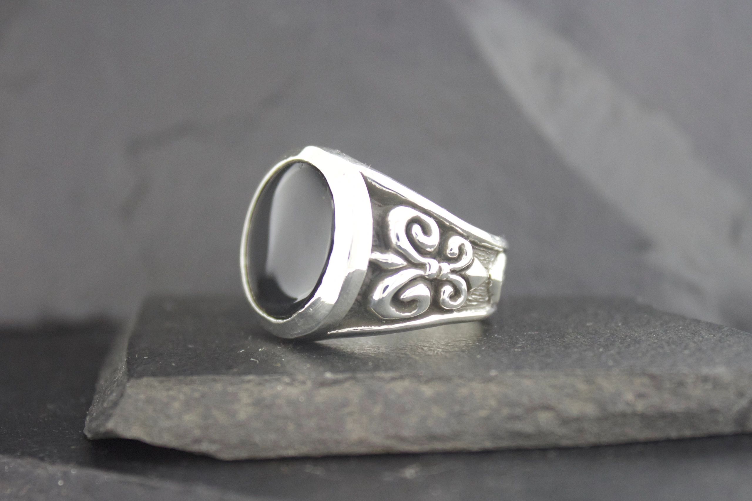 BLACK ONYX FLEUR DI LIS RING ROUND MEDIUM