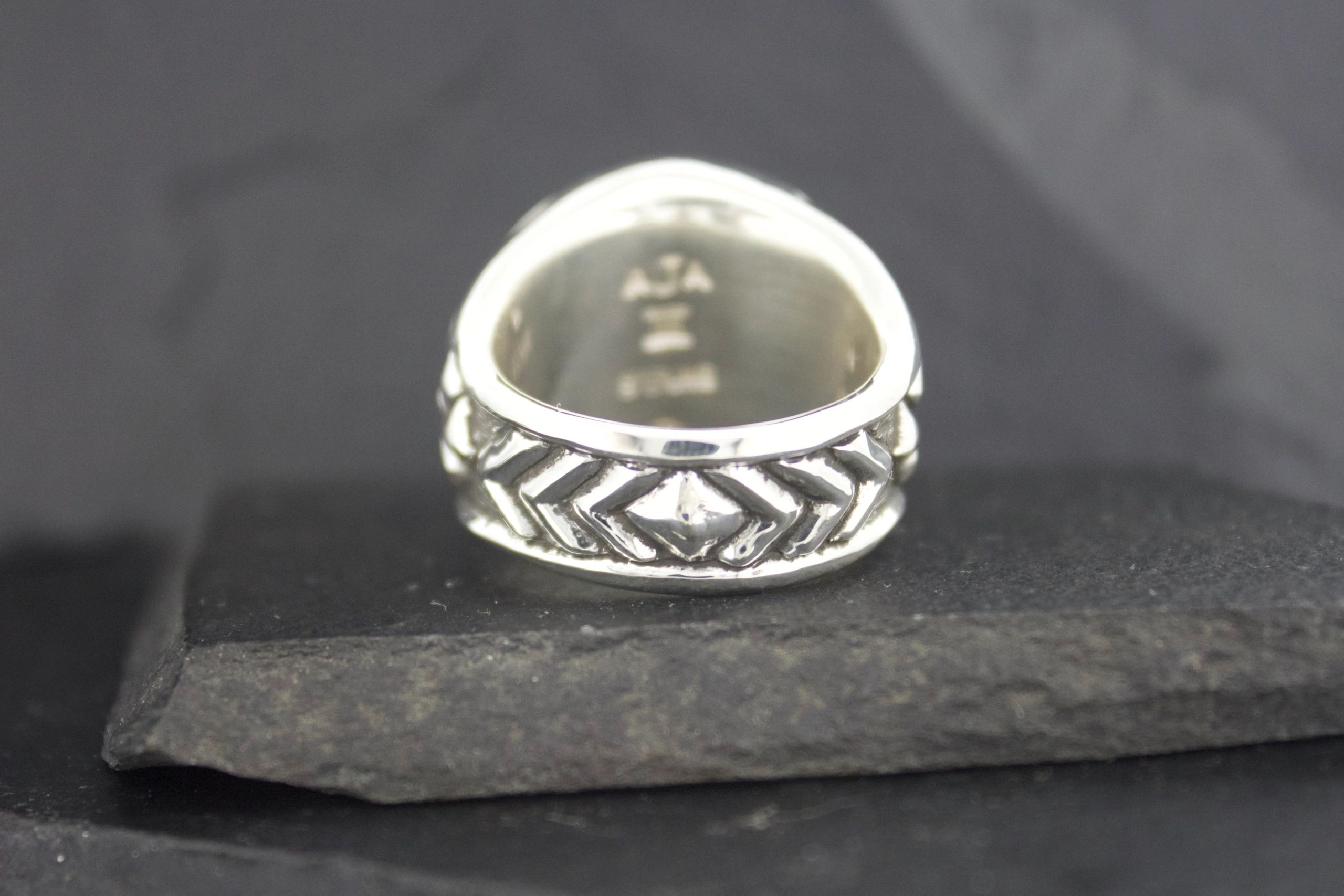 *Stone measures approximately  18mm. The exterior measures 21mm. *All rings are handmade in the USA in Nickel FREE Sterling Silver. *All rings are made to order and generally take about 2 to 3 weeks. *All rings are also available in 10K, 14K, or 18K yellow, white or rose gold, platinum and palladium . Prices available upon request. *Alternate stones and engraving can be added to most rings.   Prices available upon request
