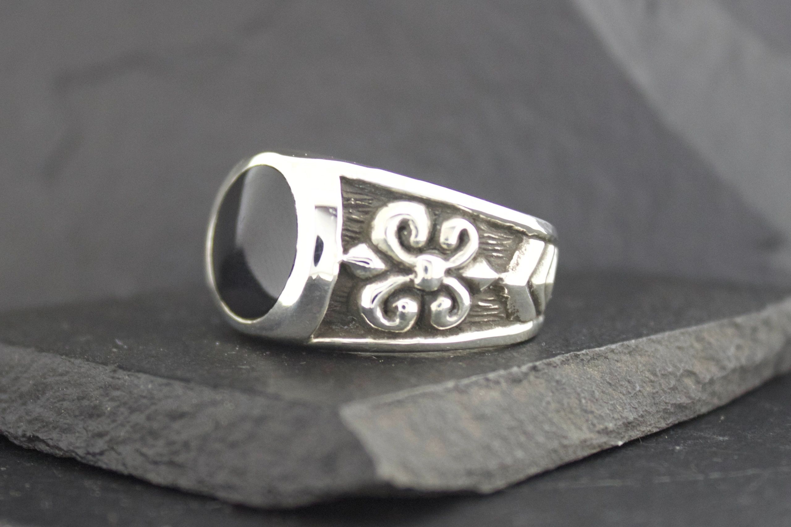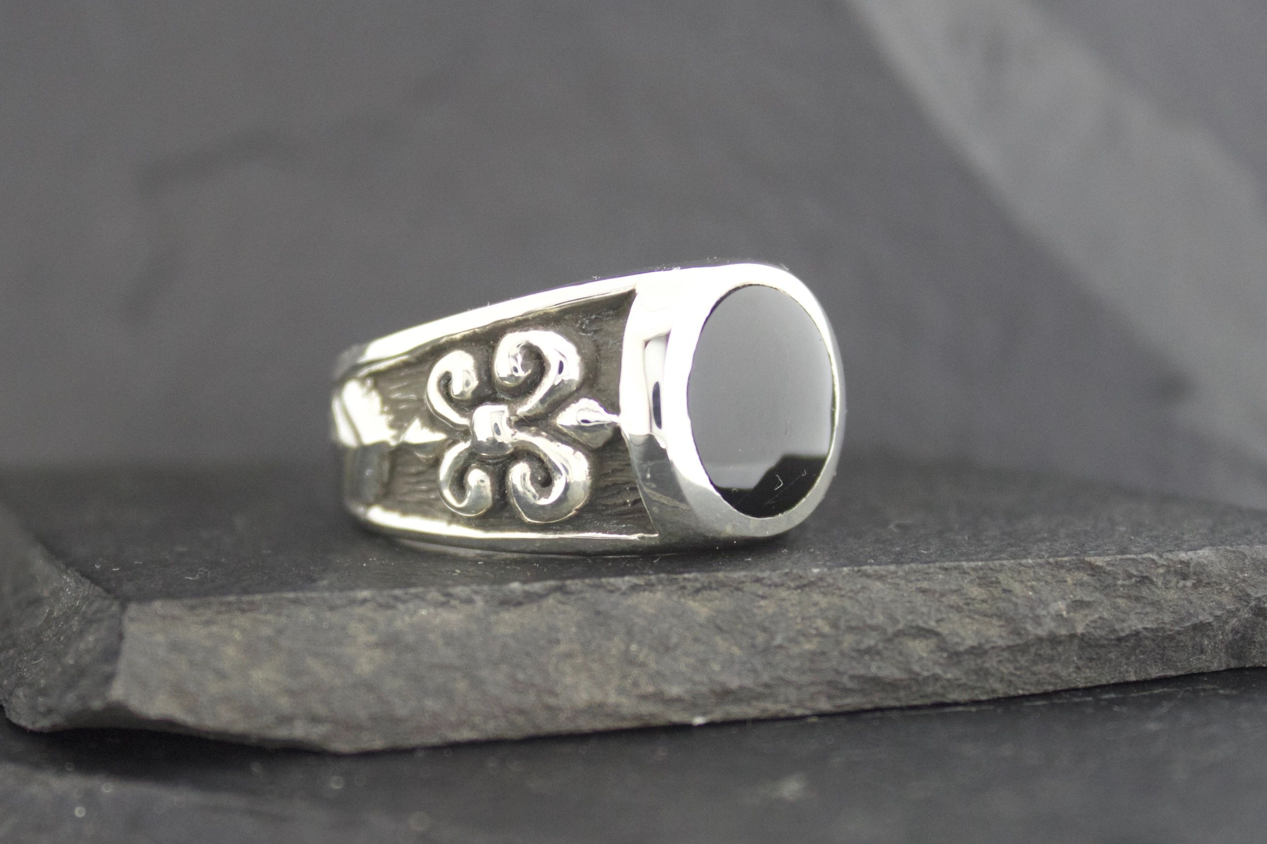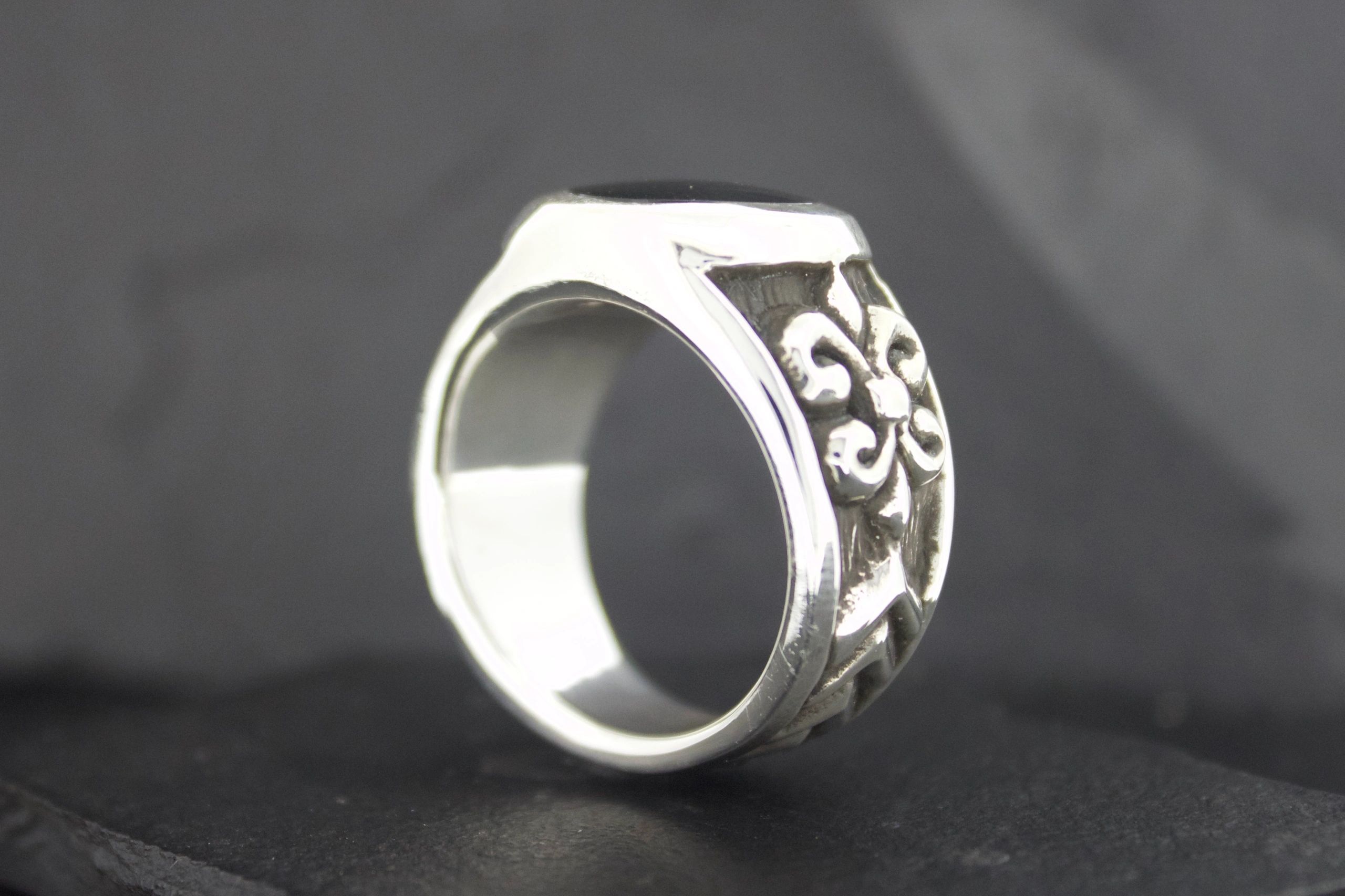 BLACK ONYX FLEUR DI LIS RING ROUND