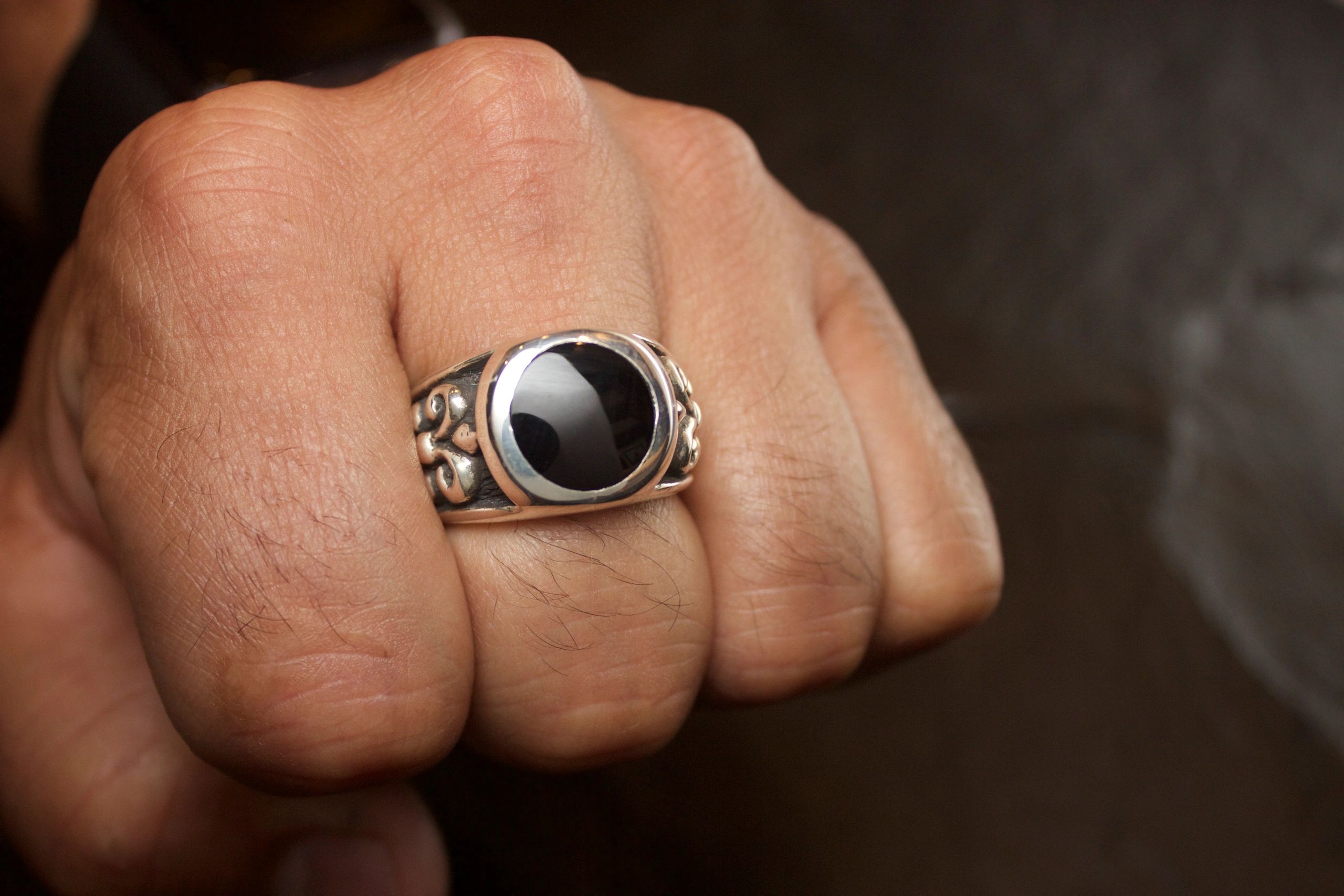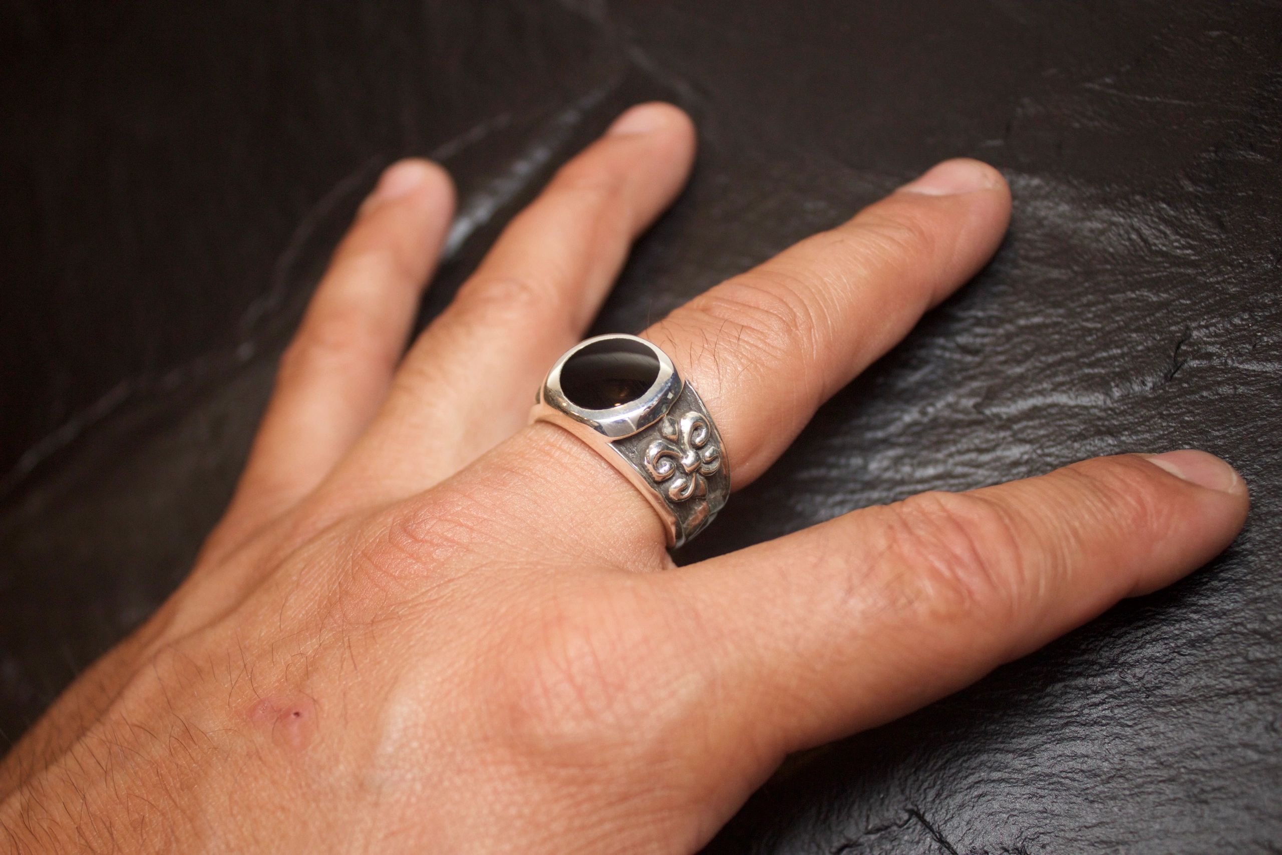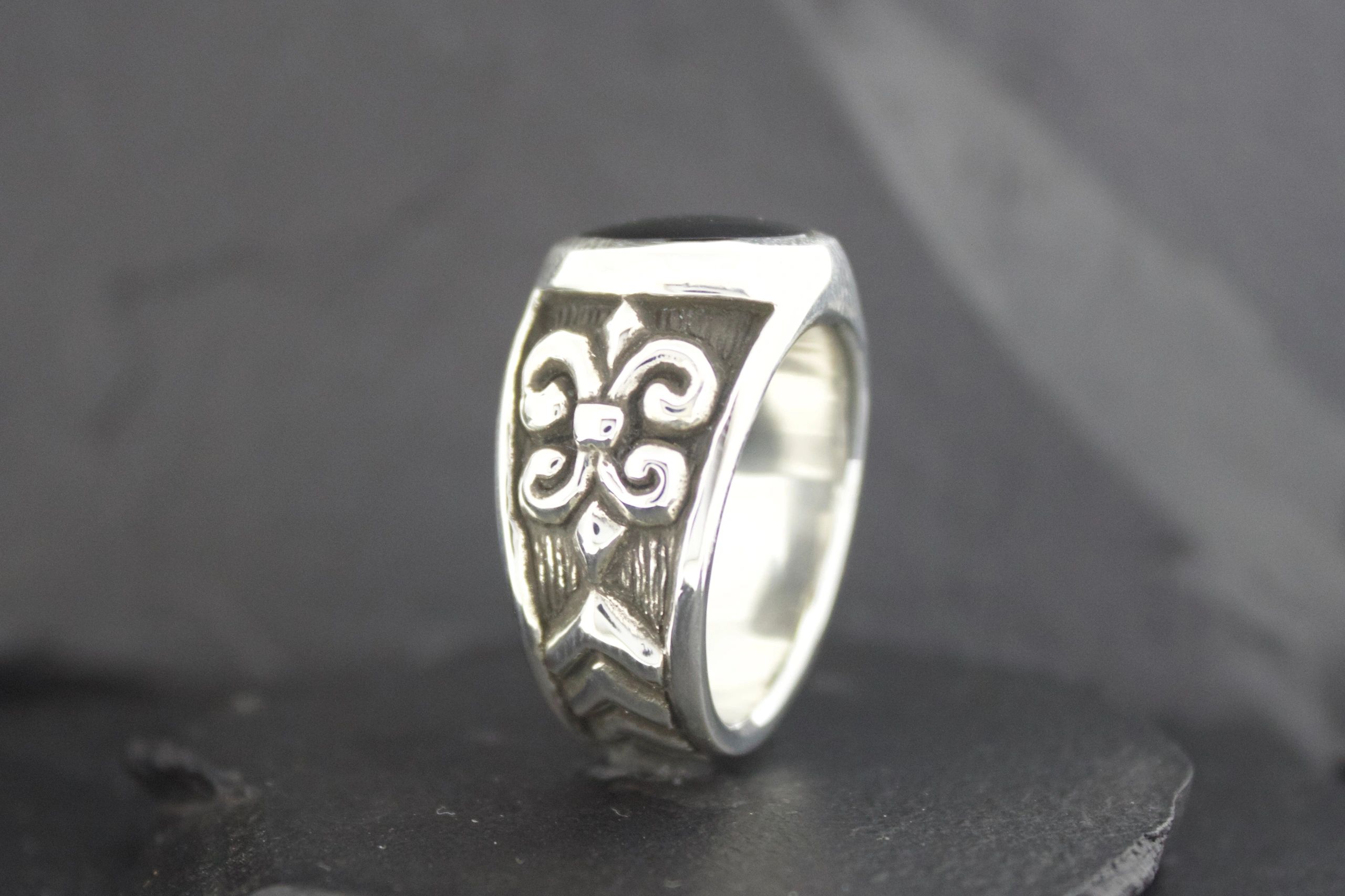BLACK ONYX FLEUR DI LIS RING ROUND