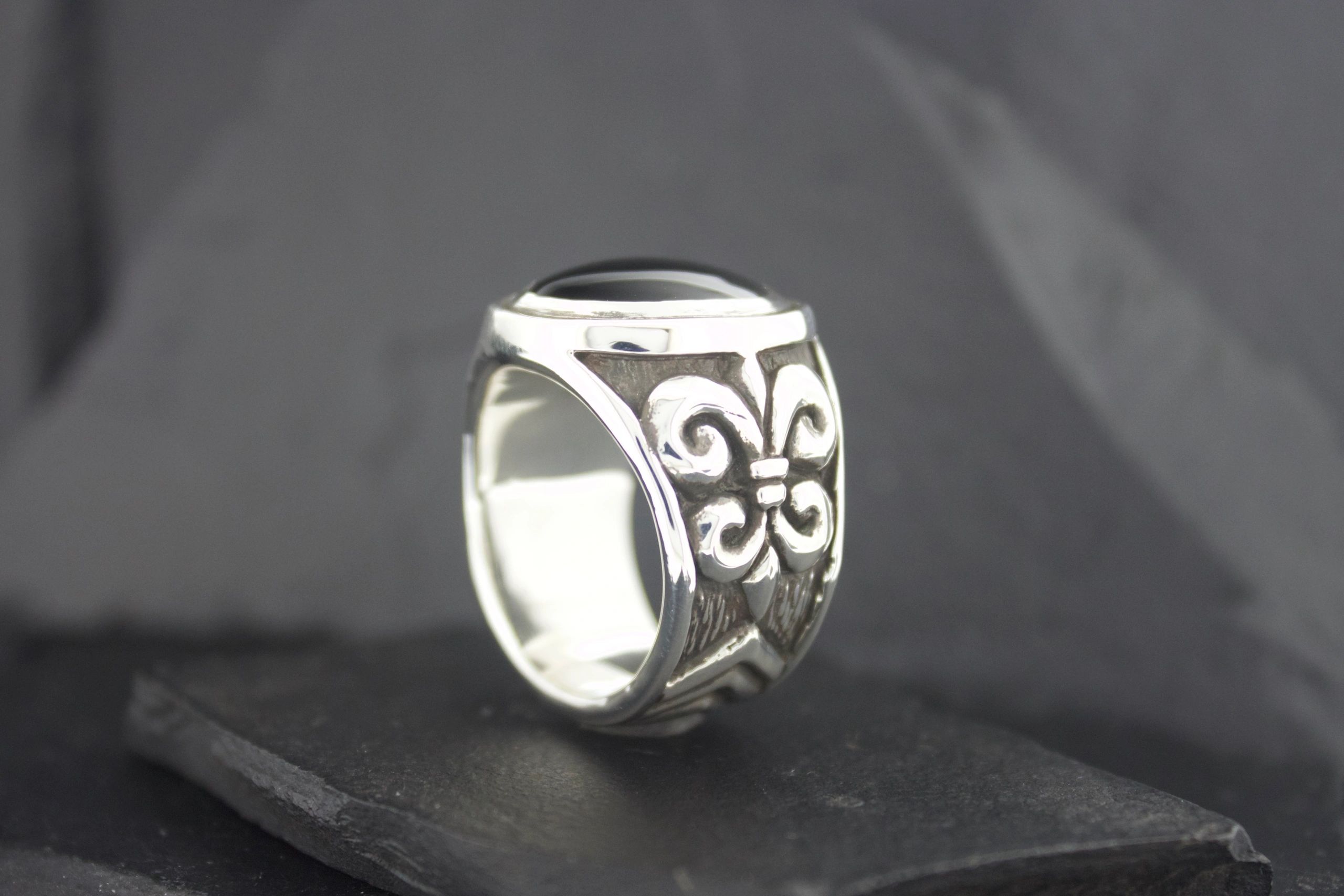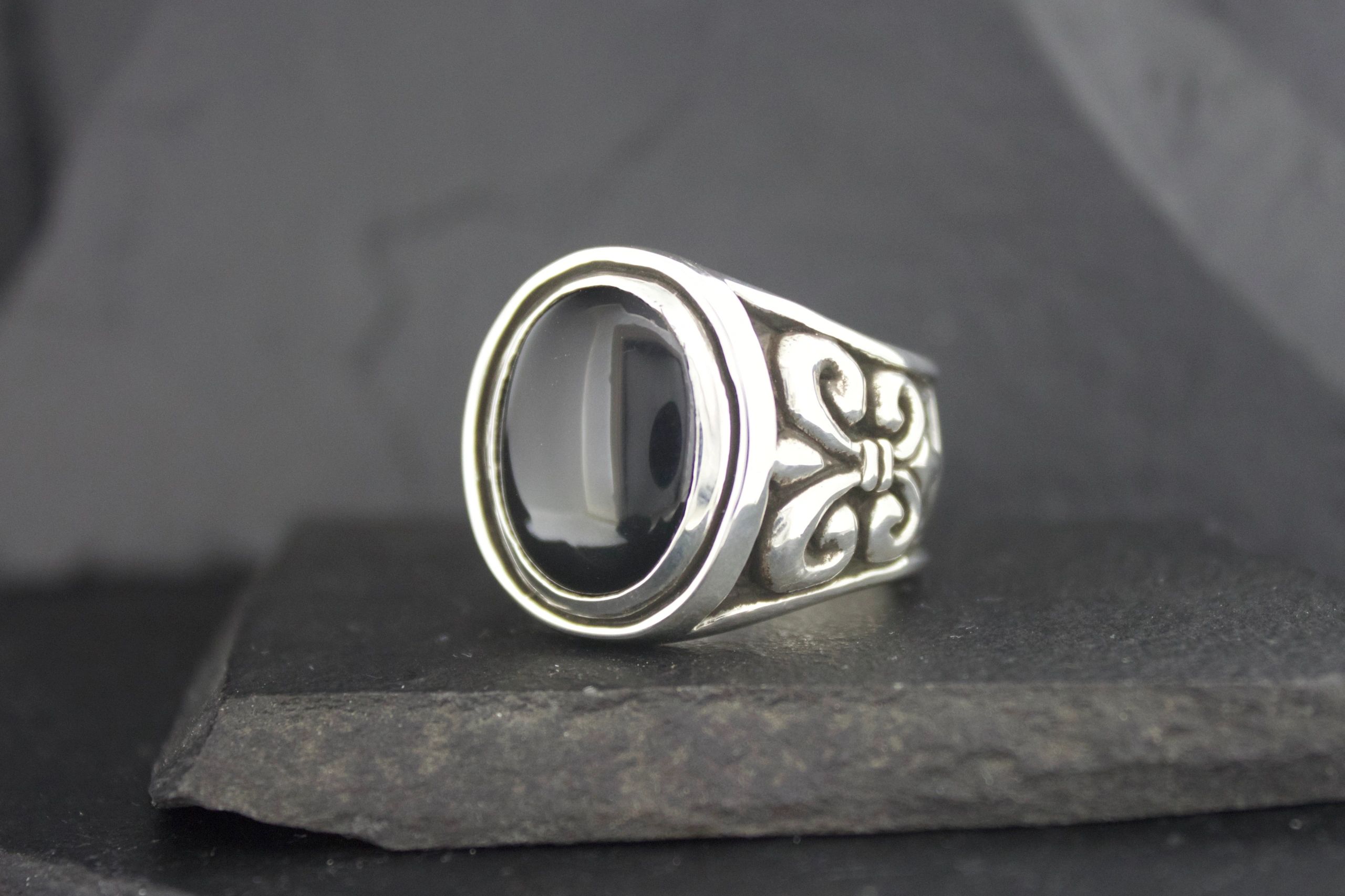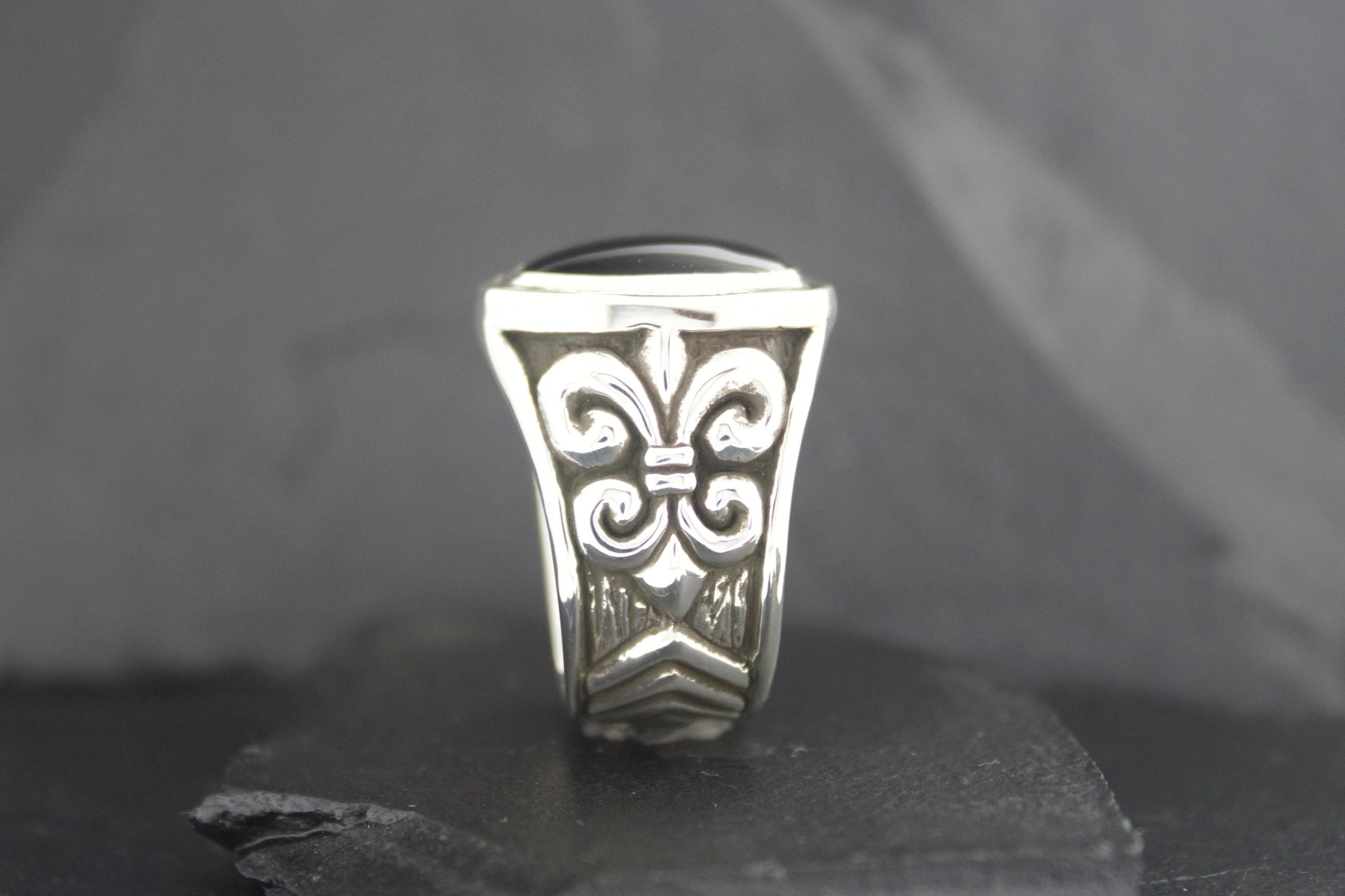 BLACK ONYX FLEUR DI LIS RING SMALL OVAL