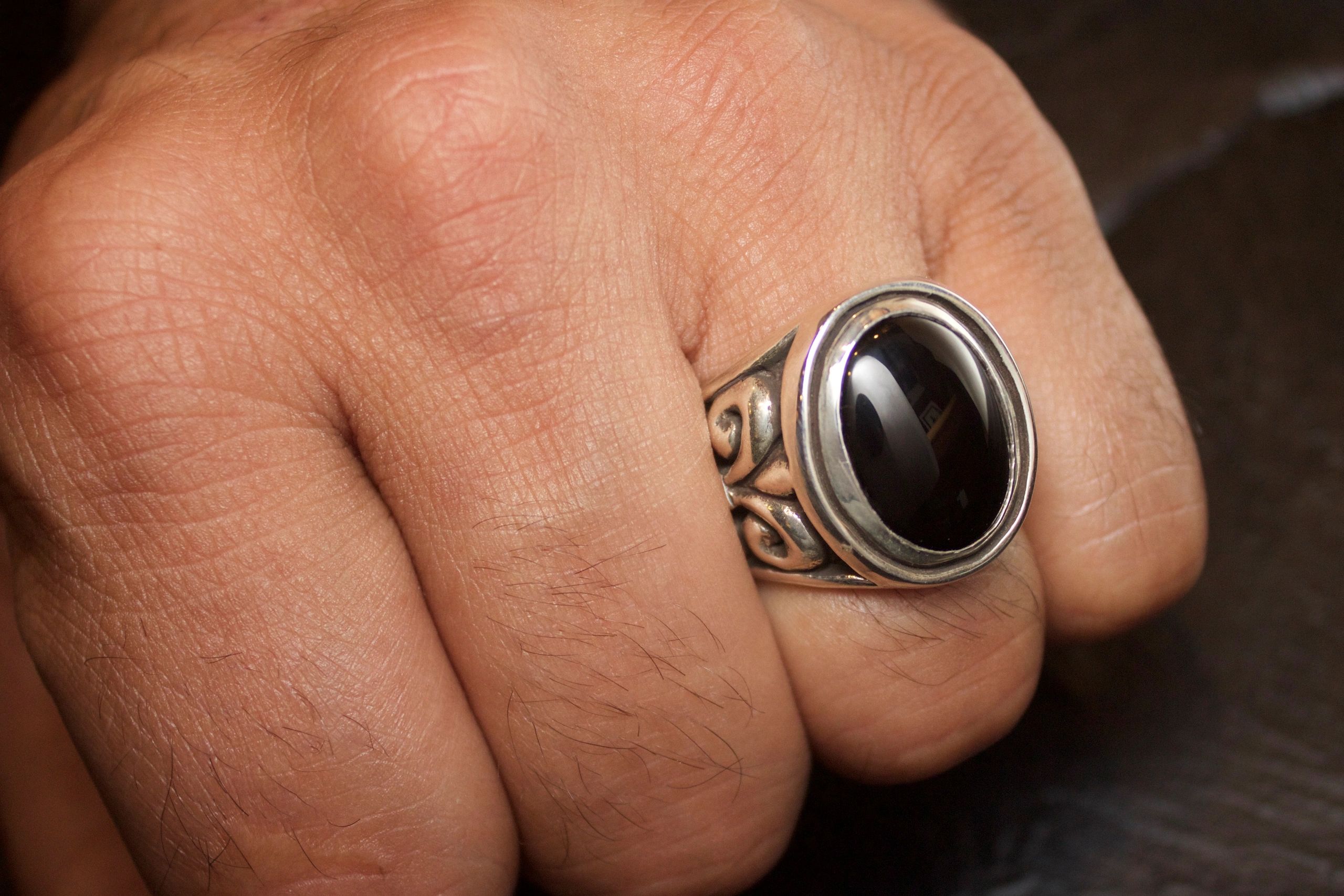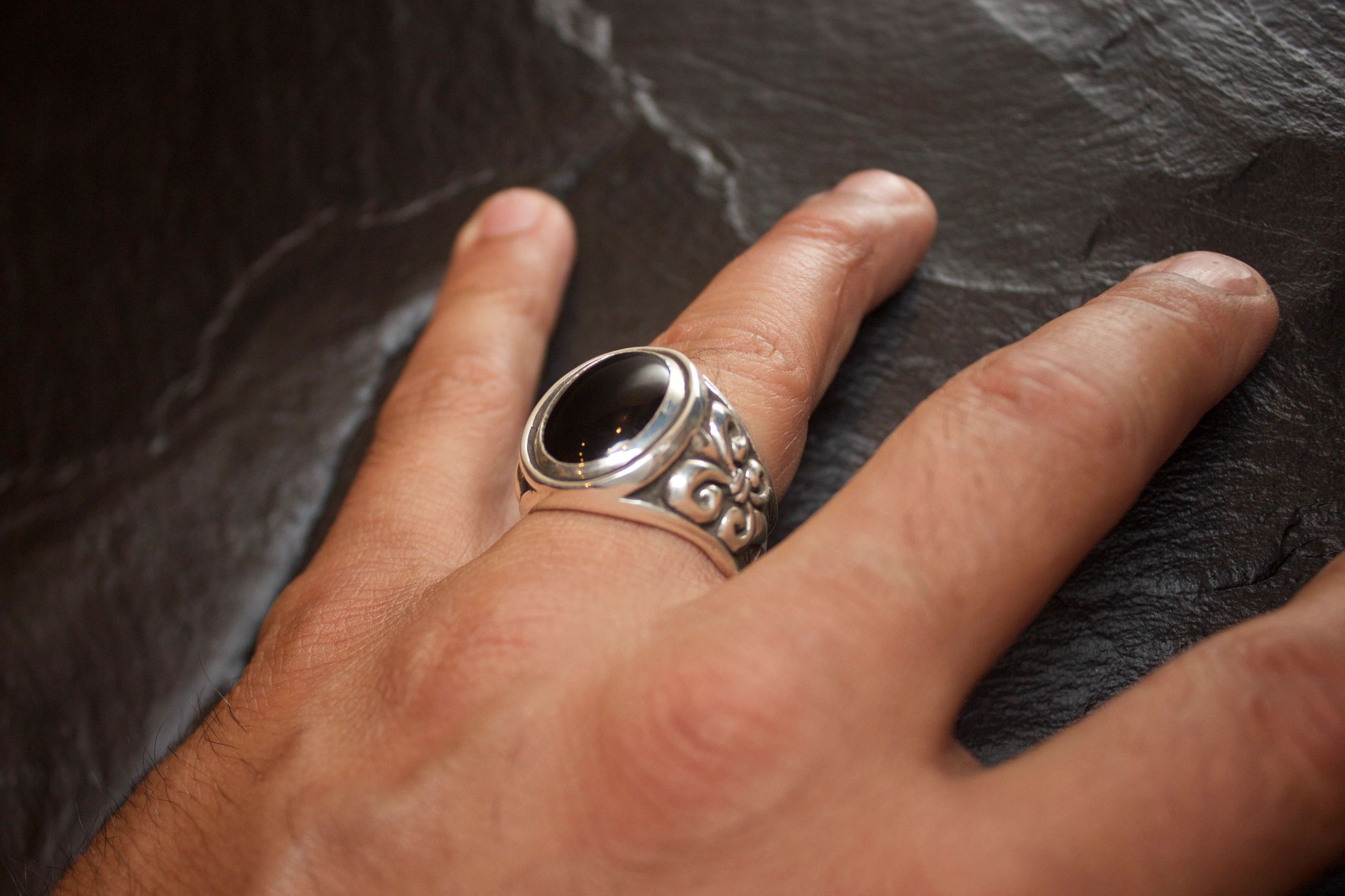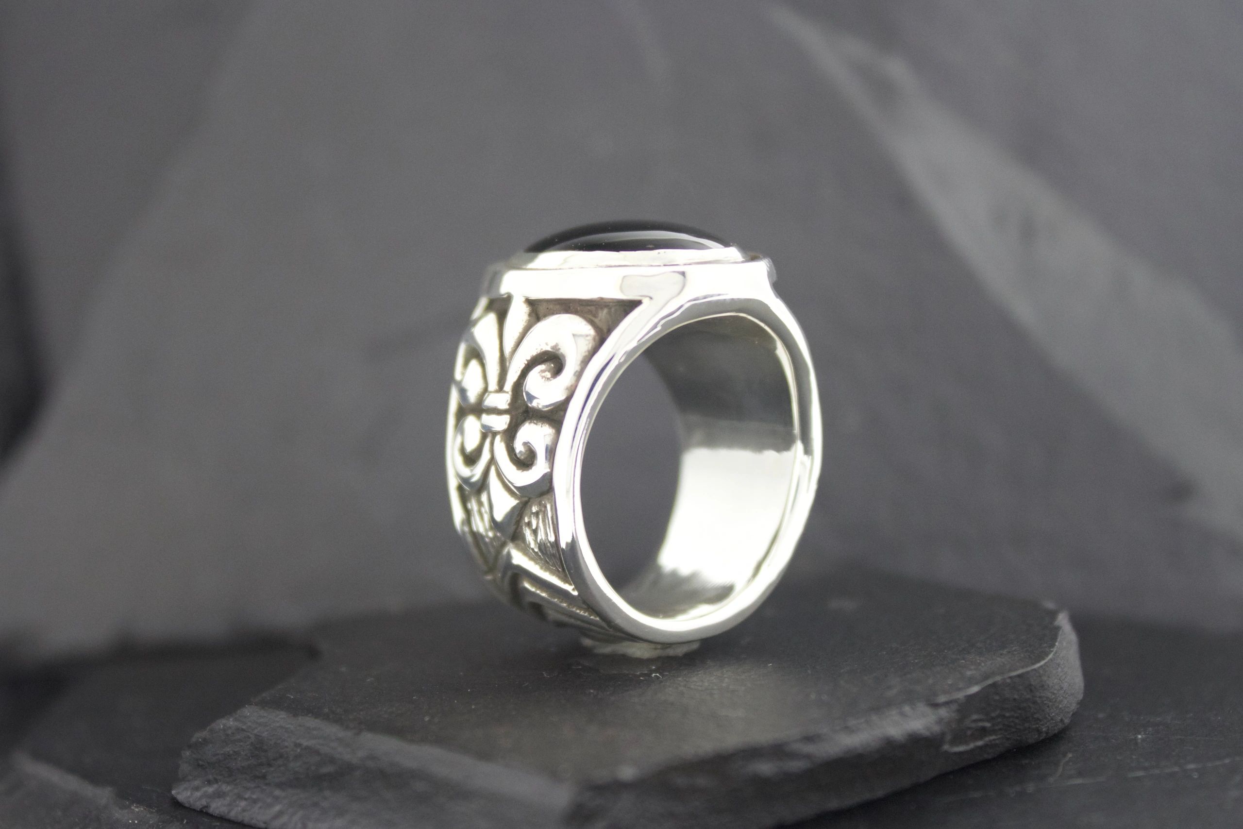 BLACK ONYX FLEUR DI LIS RING SMALL OVAL