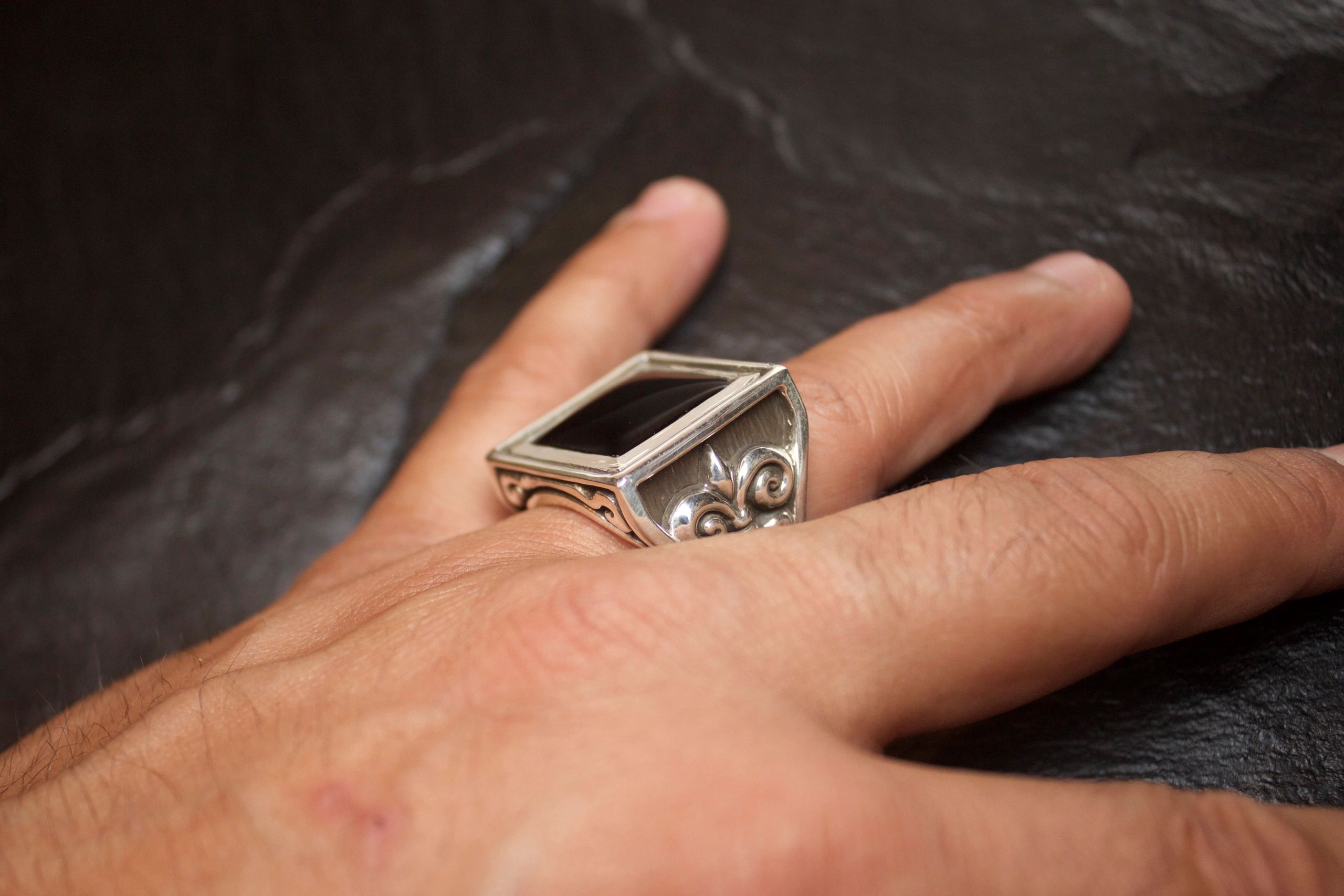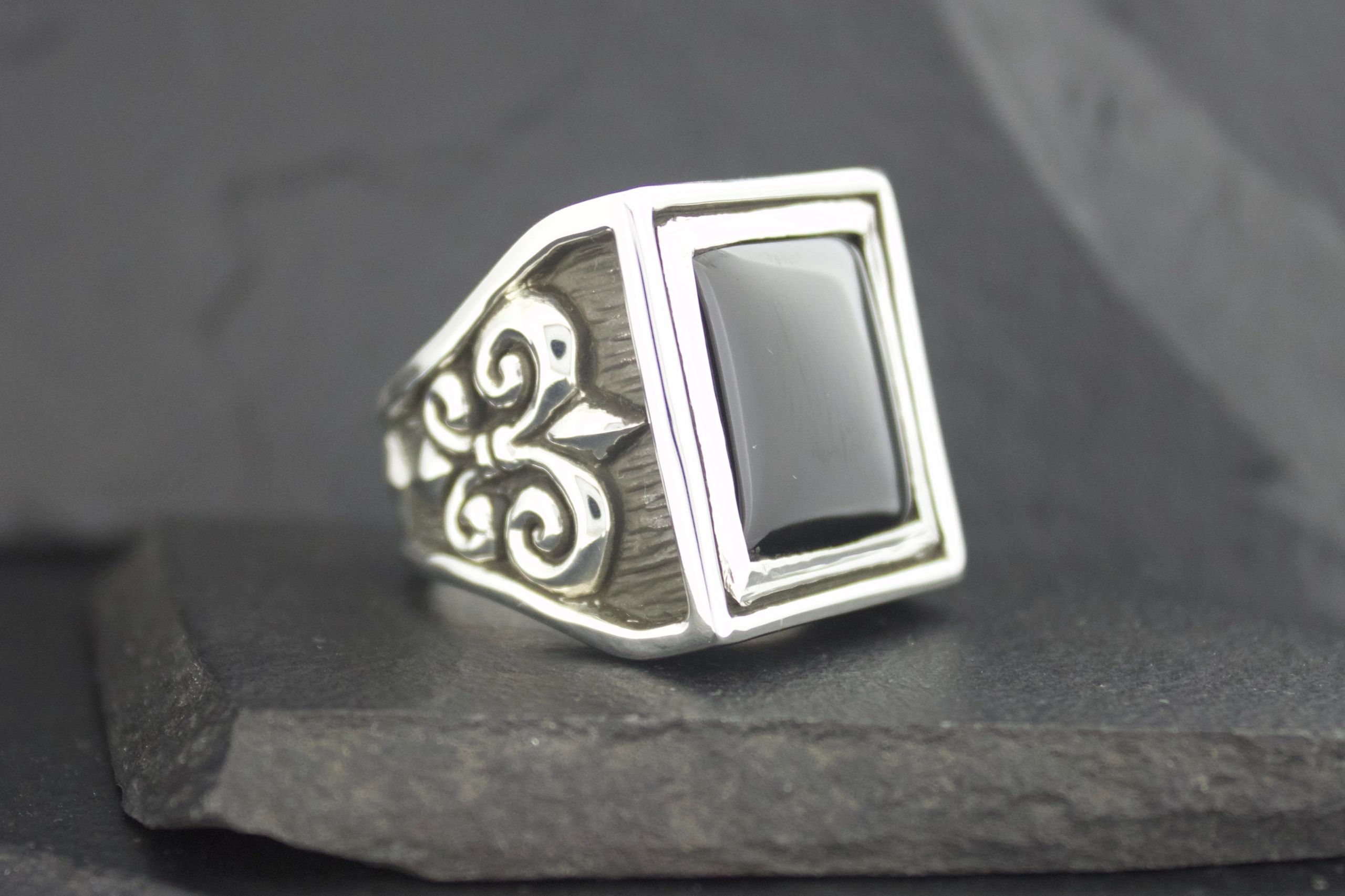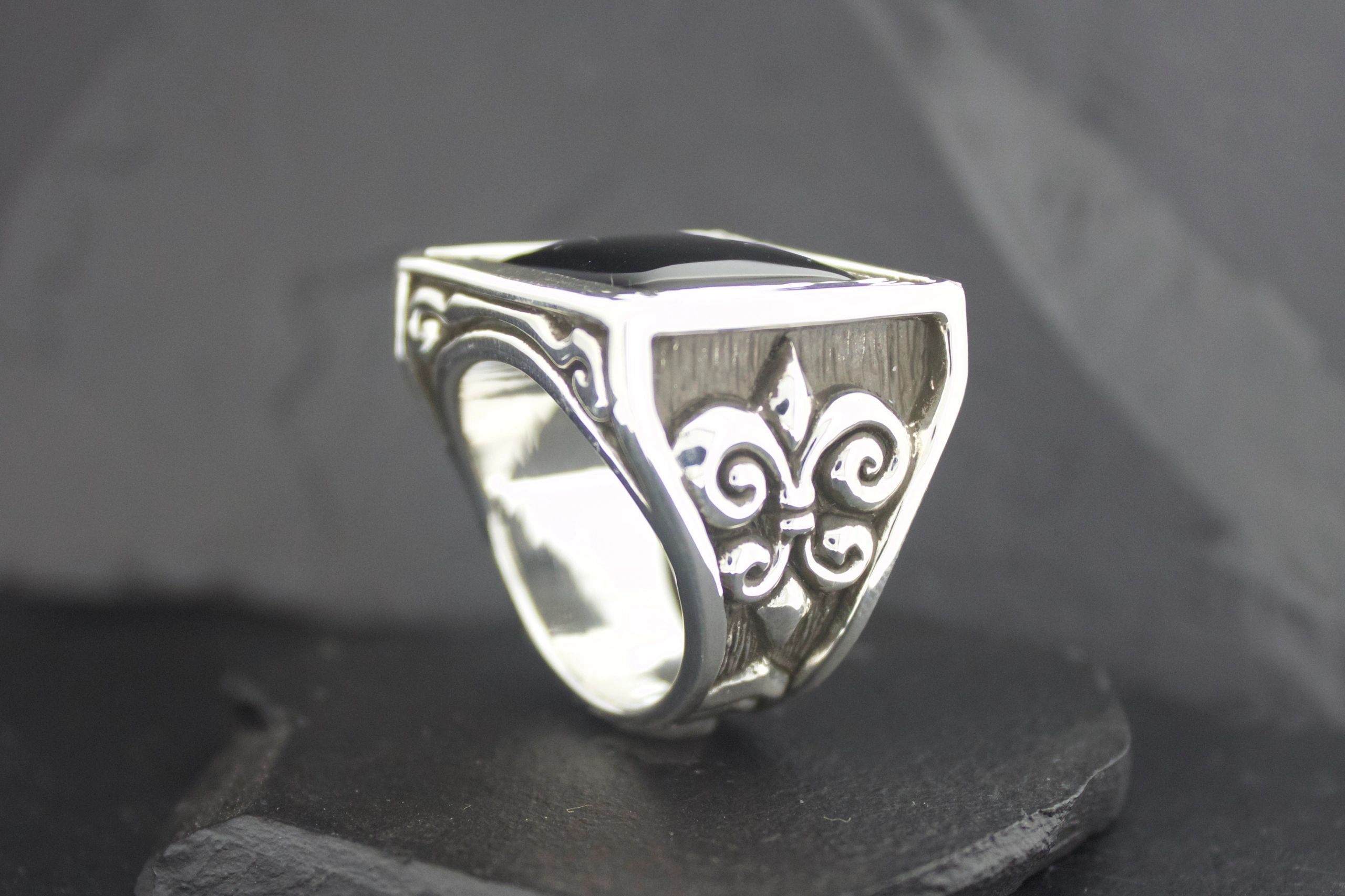 BLACK ONYX FLEUR DI LIS RING SQUARE