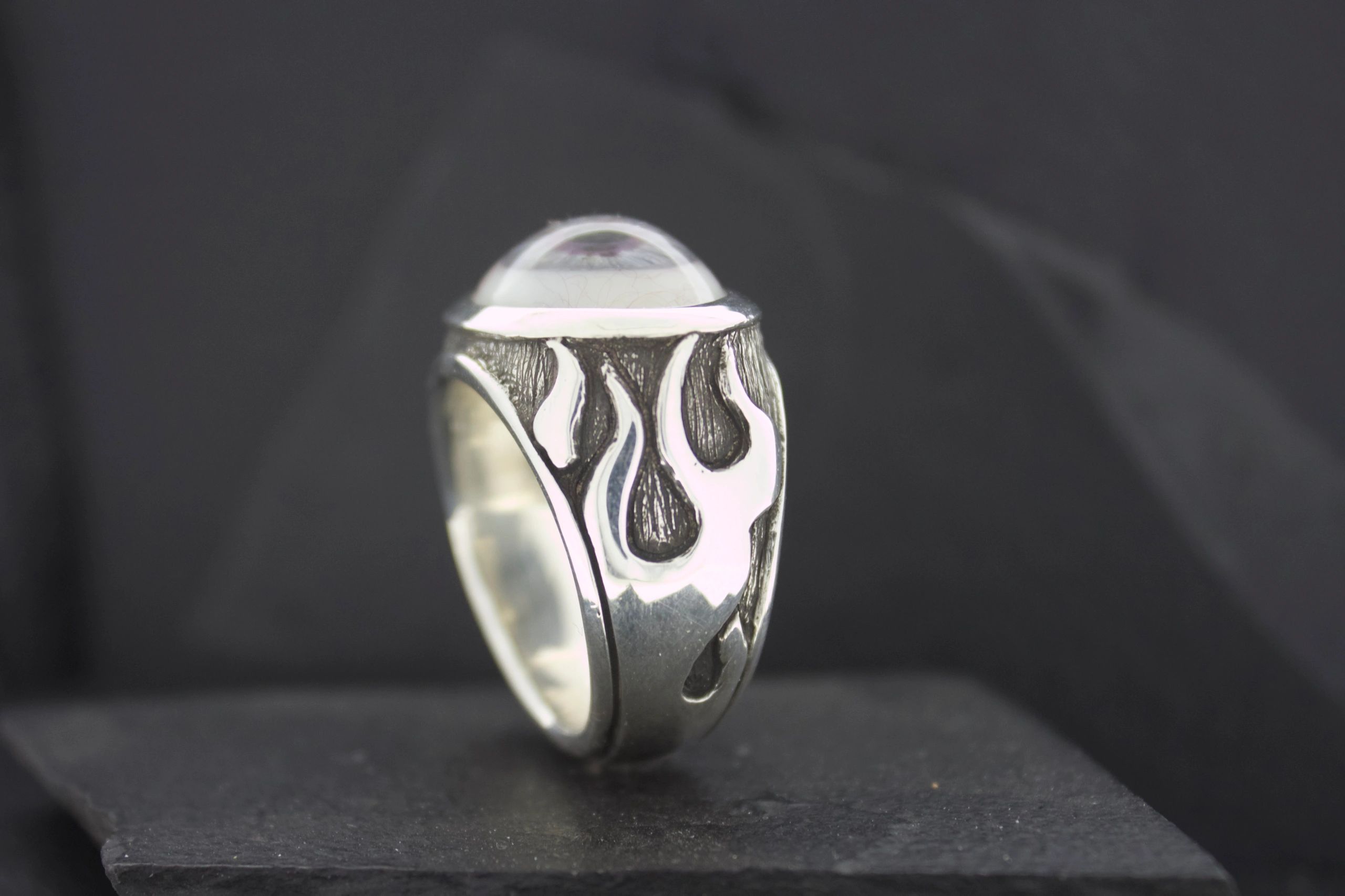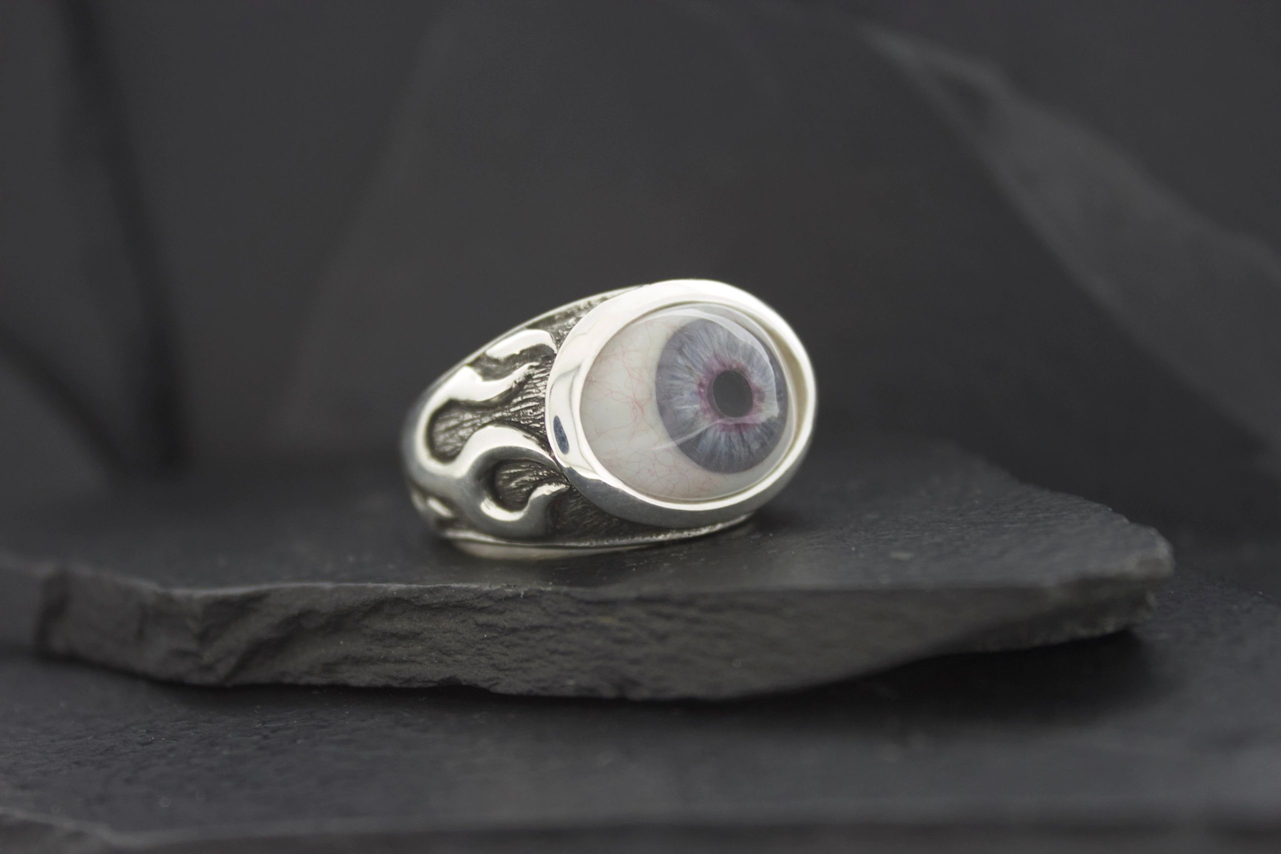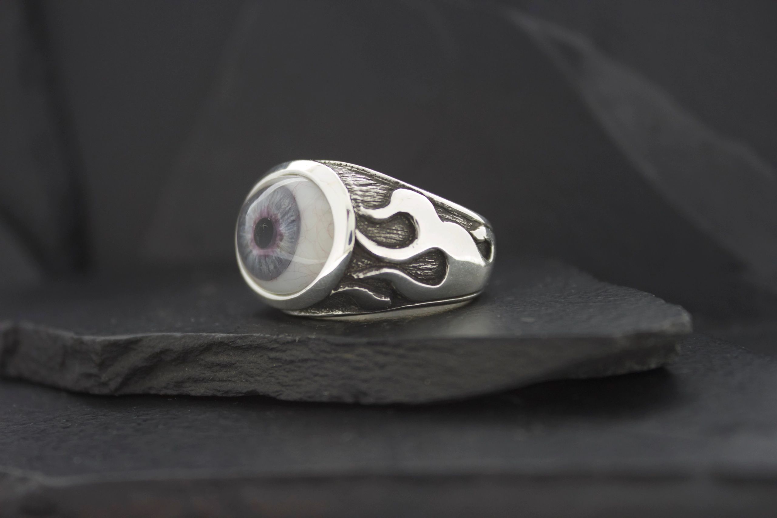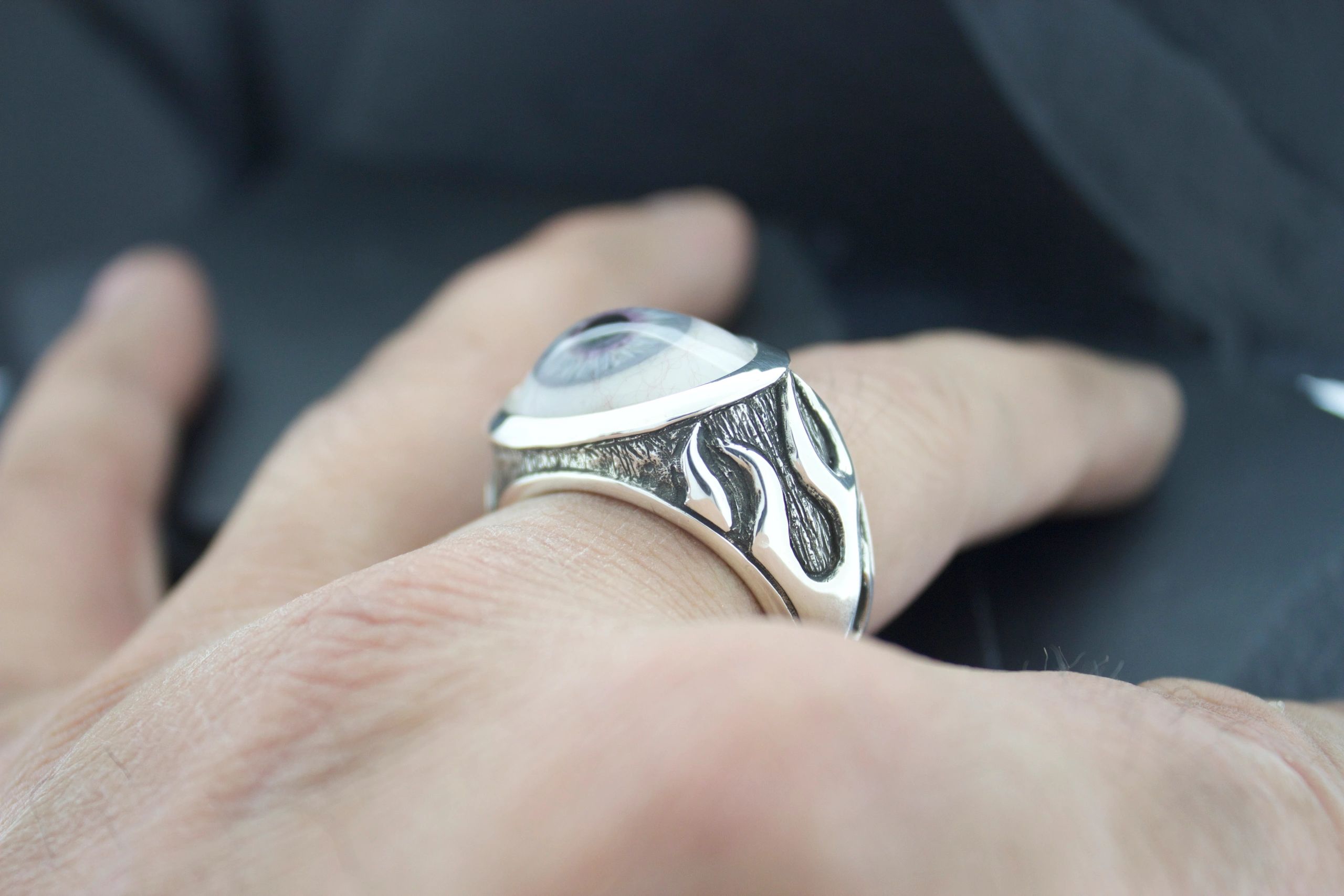 PROSTHETIC EYE RING WITH FLAMES